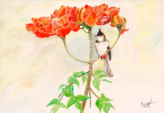 In the shadow of African tulips, Painting by Artist Mangal Gogte