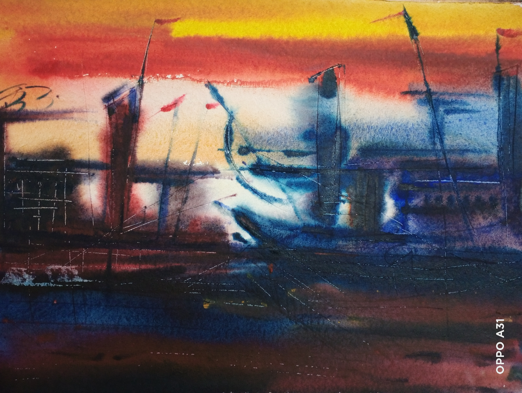 Boats-I, Painting by Artist Sudipto Chakraborty
