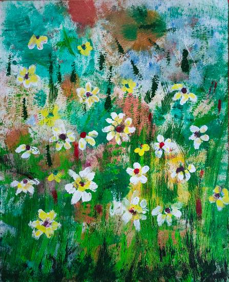 Daisies all around, painting by Child Artist Pranav Aggarwal (Born : 2012)