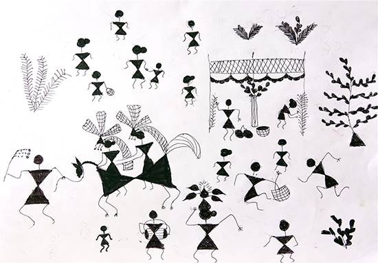 Warli Art, painting by Child Artist Shila Padvale (class 10)