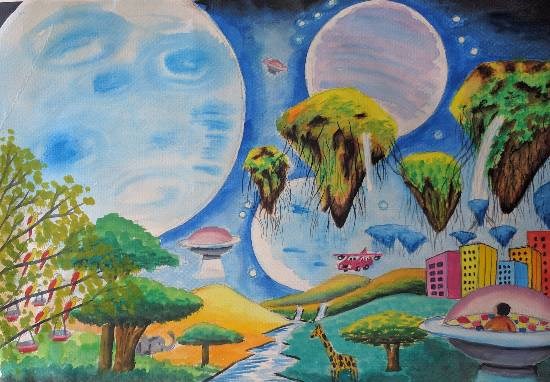 Information This painting by child artist Meet Chawla was shortlisted in Khula Aasmaan kids art competition for October to December 2016.