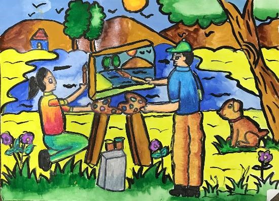 Painting the scenery, painting by Child Artist Aarushi Rakesh