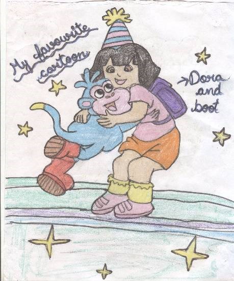 Dora and Boots, painting by Child Artist Hashanpreet Kaur Shortlisted from Khula Aasmaan free drawing contest for children Keywords: my favourite cartoon character , cartoon contest , cartoon painting contest , cartoon painting competition , cartoon competition View Portfolio icon Share Facebook Twitter Whats App Pinterest Description -- Art Number 18138 Artwork Title Dora and Boots Artist Name Hashanpreet Kaur Size 11.69 x 8.27 inches (29.6926 x 21.0058 cm) Information This painting by child artist Hashanpreet Kaur received a Shortlist in Khula Aasmaan kids art competition for April to June 2017.
