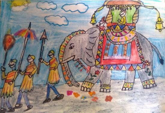 Mysore Dasara Utsav, painting by Child Artist Hanshal Banawar
