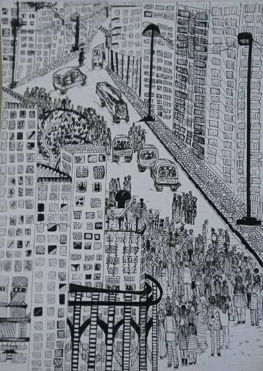 Cityscape - 2, painting by Child Artist Dighi Banerjee