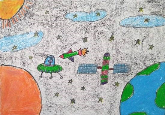 A space Journey, painting by Child Artist Ananya Satish Pisharody Painting by child artist in Khula Aasmaan, a platform for creative expression by children & young adults Keywords: my favourite cartoon character , cartoon contest , cartoon painting contest , cartoon painting competition , cartoon competition View Portfolio icon Share Facebook Twitter Whats App Pinterest Description -- Art Number 19037 Artwork Title A space Journey Artist Name Ananya Satish Pisharody Medium Crayons on Paper Information Read the write-up on "Outer Space"