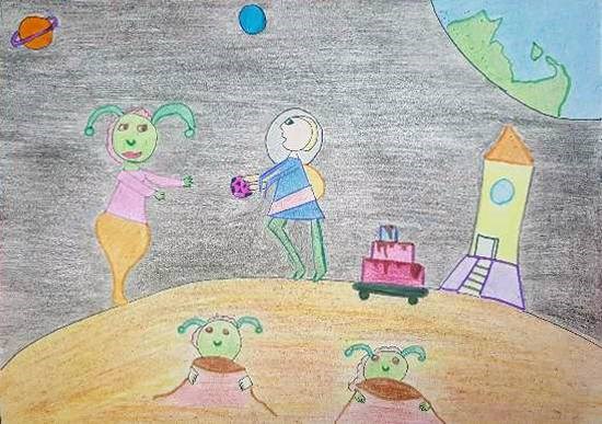 Fun time with my alien friends, painting by Child Artist SHARANYA MALLICK