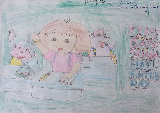 First day of School, painting by Child Artist Aishwarya Anil Pillai Shortlisted in Khula Aasmaan art competition for children Keywords: my favourite cartoon character , cartoon contest , cartoon painting contest , cartoon painting competition , cartoon competition View Portfolio icon Share Facebook Twitter Whats App Pinterest Description -- Art Number 20241 Artwork Title First day of School Artist Name Aishwarya Anil Pillai Information This painting by child artist Aishwarya Anil Pillai received a Shortlist in Khula Aasmaan kids art competition for October to December 2017.