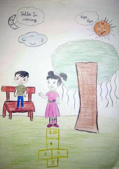 Evening Time, painting by Child Artist Ananya Satish Pisharody