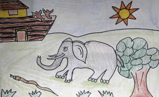 Elephant, painting by Child Artist Joysi Ajay Pardeshi