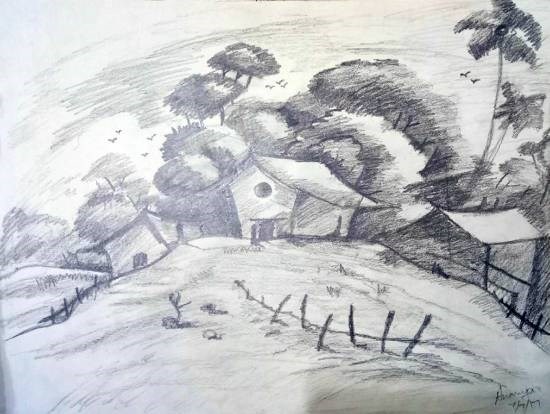 Landscape - 1, painting by Child Artist Ananya Bansal