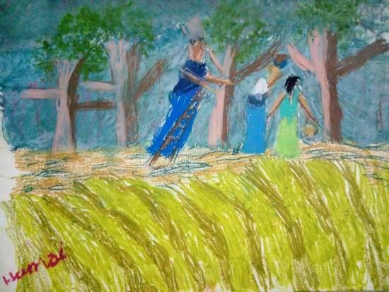 Ladies on a farm, painting by Child Artist Hamsini Aswin