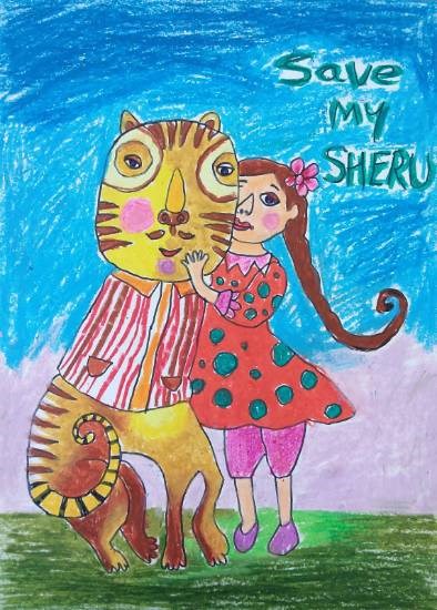 My Tiger Sheru Silver medal in Khula Aasmaan national kids painting competition Keywords: My Tiger Sheru , tiger , sheru , wild animal , save tiger , wildlife , wildlife art , wildlife painting , wildlife painting contest View Portfolio icon Share Facebook Twitter Whats App Pinterest Description -- Art Number 21053 Artwork Title My Tiger Sheru Artist Name Twisha Palav Medium Pastel on Paper Size 11.69 x 8.27 inches (29.6926 x 21.0058 cm) Price Rs. 5,900 ($80.05) Information This painting by Twisha Palav received a Gold Medal in Khula Aasmaan kids art competition for July to September 2018.