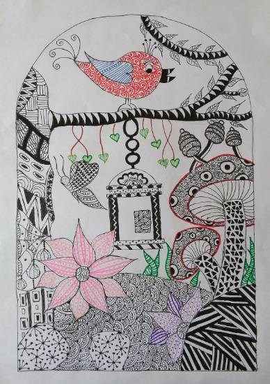 Bird Shortlisted from Khula Aasmaan online art contest for children Keywords: doodle , bird , design View Portfolio icon Share Facebook Twitter Whats App Pinterest Description -- Art Number 21148 Artwork Title Bird Artist Name Khwahish Kapasi Size 11.69 x 8.27 inches (29.6926 x 21.0058 cm) Information This painting by child artist Khwahish Kapasi was shortlisted in Khula Aasmaan children's art contest for July to September 2018.
