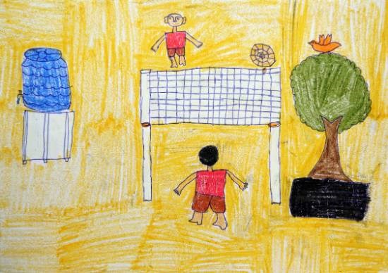 Holly ball, painting by Child Artist Neharika Prashant Raut Shortlist from Khula Aasmaan kids drawing contest Keywords: holly ball , playing holly ball , net , tree , drum , ball , bird View Portfolio icon Share Facebook Twitter Whats App Pinterest Description -- Art Number 21516 Artwork Title Holly ball Artist Name Neharika Prashant Raut Medium Oil Pastel on Paper Size 8.25 x 11.75 inches (20.955 x 29.845 cm) Information This painting by child artist Neharika Prashant Raut was shortlisted in Khula Aasmaan free child art for October to December 2018.