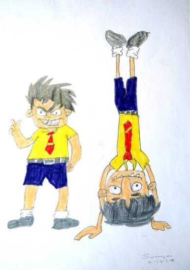 Nought Boys, painting by Child Artist Soumya Parag Upadhyay Shortlisted from Khula Aasmaan child art competition Keywords: tow boys playing , naughty boy , yellow shirt View Portfolio icon Share Facebook Twitter Whats App Pinterest Description -- Art Number 21568 Artwork Title Nought Boys Artist Name Soumya Parag Upadhyay Medium Oil Pastel on Paper Size 11.5 x 8.25 inches (29.21 x 20.955 cm) Information This painting by child artist Soumya Parag Upadhyay was shortlisted in Khula Aasmaanfree cartoon contest for children for October to December 2018.