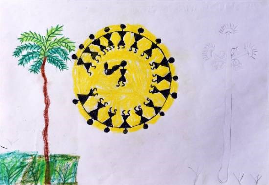 Warli Art, painting by Child Artist Akash Sabu Padvale