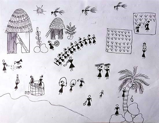 Warli Art, painting by Child Artist Kajal Pravin Baraf