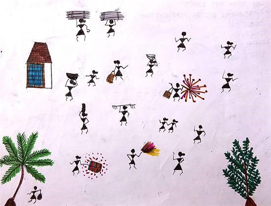 Warli Art, painting by Child Artist Sheetal Vasant Maloda