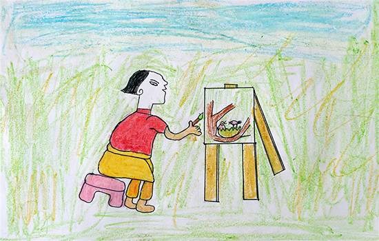 Artist, painting by Child Artist Harshada Madha Honorable Mention in Khula Aasmaan online art competition for children Keywords: artist , figurative , drawing board , birds View Portfolio icon Share Facebook Twitter Whats App Pinterest Description -- Art Number 22145 Artwork Title Artist Artist Name Harshada Madha Medium Oil Pastel on Paper Size 8.27 x 11.69 inches (21.0058 x 29.6926 cm) Information This painting by child artist Harshada Madha received a Honorable Mention in Khula Aasmaan painting contest for children and college students for January to March 2019.