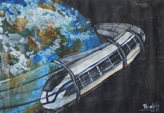 SPACE TRAIN, painting by Child Artist Bhakti Modale Bronze medal in Khula Aasmaan children's painting competition Keywords: Railway , Bullet train , train , speed View Portfolio icon Share Facebook Twitter Whats App Pinterest Description -- Art Number 22228 Artwork Title SPACE TRAIN Artist Name Bhakti Modale Medium Poster colour on Paper Size 8.3 x 11.7 inches (21.082 x 29.718 cm) Information This painting by child artist Bhakti Modale received a Bronze Medal in Khula Aasmaan kids art competition for January to March 2019. See the video about this artwork