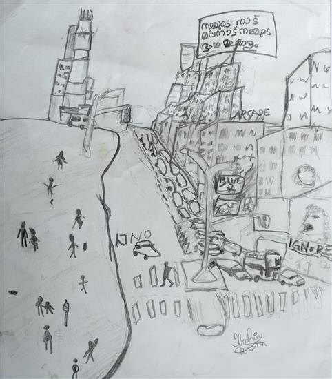 Traffic Block, painting by Child Artist Sameera Mohammad Honorable Mention in Khula Aasmaan national art competition for children Keywords: cityscape , traffic , traffic blog , vehicles , conceptual , street , crowd View Portfolio icon Share Facebook Twitter Whats App Pinterest Description -- Art Number 22478 Artwork Title Traffic Block Artist Name Sameera Mohammad Medium Charcoal and Pencil on Paper Size 11.69 x 8.25 inches (29.6926 x 20.955 cm) Information This painting by child artist Ibrahim Abees Puthenpura, Class 3 received a Honorable Mention in Khula Aasmaan kids art competition for April to June 2019. This drawing is my imagination of the traffic block in my city. Kochi, as viewed by me from Edapally Metro Station. Urbanisation has made towns and cities overcrowded with vehicles. My Gods own country is no excuse. People and life is struck in these blocks, raising pollution level and damaging environment. My favorite medium to draw is pencil. Expressing an idea through pencil and charcoal shading is difficult compared to using colors. I use different types of pencil from light to dark lead. it is called the degree of hardness and is designated by numbers such as 2B, 4B, 2H, 6B, etc Charcoal pencil is used to shade the drawing finally. I have not joined any arts classes, hence do my own simple innovations in pencil drawing.