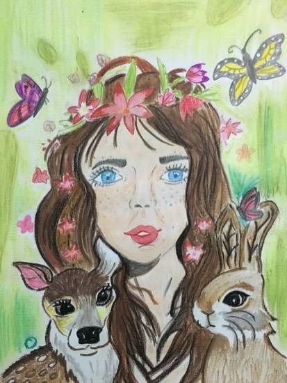 Forest Girl, painting by Child Artist Dikshya Supreet