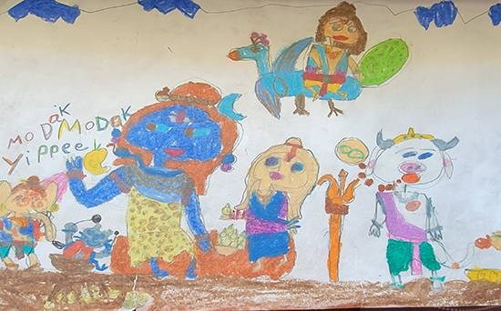 Prithvi Pradakshina Children’s art in Khula Aasmaan, a platform for creative expression by children & young adults Keywords: Prithvi Pradakshina , lord Kartikeya , lord Ganesh , peacock , earth , Parvati View Portfolio icon Share Facebook Twitter Whats App Pinterest Description -- Art Number 22775 Artwork Title Prithvi Pradakshina Artist Name Mehak Borse Medium Oil Pastel on Paper Size 11.69 x 16.53 inches (29.6926 x 41.9862 cm) Information Mehak had shown Prithvi Pradakshina competition held between lord Kartikeya & lord Ganesh. Lord Kartikeya is sitting on Peacock to take a round of earth. Goddess Parvati had prepared Modak for Ganesh.