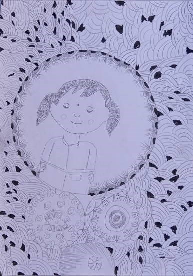 Girl - Doodle art by child artist Asuya Shailesh Nagare Shortlist in Khula Aasmaan kids drawing contest for children Keywords: figurative , girl , doodle art View Portfolio icon Share Facebook Twitter Whats App Pinterest Description -- Art Number 23035 Artwork Title Girl - Doodle art Artist Name Asuya Shailesh Nagare Medium Pencil and black pen on Paper Size 11.69 x 8.27 inches (29.6926 x 21.0058 cm) Information This painting by child artist Asuya Shailesh Nagare, class 5 received a Shortlist in Khula Aasmaan kids drawing contest for children for October to December 2019.