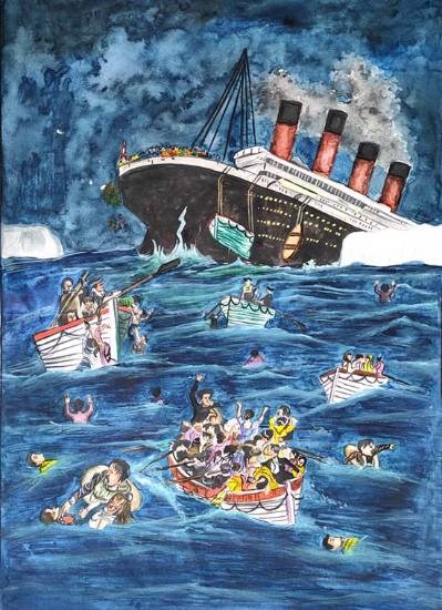 The most pathetic scene shipwreck of Titanic Silver medal in Khula Aasmaan art competition for children Keywords: sky , ship , ocean , north atlantic ocean , the massive ship , iceberg , passengers and crew , canada View Portfolio icon Share Facebook Twitter Whats App Pinterest Description -- Art Number 23664 Artwork Title The most pathetic scene shipwreck of Titanic Artist Name Somdutta Dey Medium Watercolour on Paper Size 16.53 x 11.69 inches (41.9862 x 29.6926 cm) Information At 2.20 AM April 15, 1912 the British ocean liner Titanic sinks into the North Atlantic Ocean about 400 miles south of Newfoundland, Canada; the massive ship, which carried 2,200 passengers and crew, hard struck an iceberg two and half hour before. This painting by child artist Somdutta Dey (11 years) received Silver medal in Khula Aasmaan art competition for children for October to December 2020. See the video about this artwork