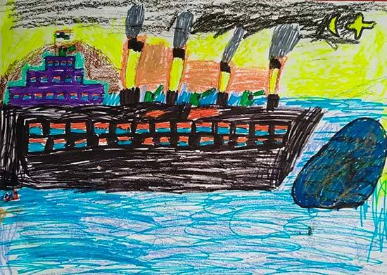 This painting by child artist R. Aadhitya (7 years) received a Shortlist in Khula Aasmaan art competition for children for January to March 2021.