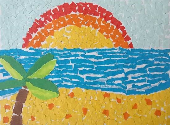 The Sunset at the Beach Bronze medal in Khula Aasmaan national kids painting competition Keywords: vibrant colors , Sunset at the Beach , beautiful look , make out of waste View Portfolio icon Share Facebook Twitter Whats App Pinterest Description -- Art Number 23937 Artwork Title The Sunset at the Beach Artist Name Agastyaa Pahwa Medium Paper Collage on Paper Size 8.27 x 11.69 inches (21.0058 x 29.6926 cm) Price Rs. 5,900 ($80.05) Information The Artwork is a drawing about the vibrant colors of The Sunset at the Beach. Agastya Pahwa has used an A4 sheet and tried to give a beautiful look at the sunset with paper cut from hand – The best I could make out of waste - is my medium. Through this drawing I am trying to give a message - "That every sunset brings us a promise of a new day ahead". This painting by child artist Agastya Pahwa (7 years) received a Bronze Medal in Khula Aasmaan national kids painting competition for August 2021. See the video about this artwork