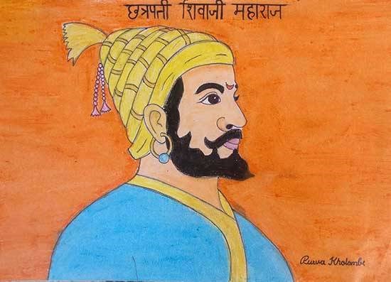 Chhatrapati Shivaji Maharaj shortlisted in Khula Aasmaan painting competition for children Keywords: chhatrapati shivaji , ruler of india , bravest , most progressive , sensible rulers , father of indian navy , Khula Aasmaan , painting competition , competition for children View Portfolio icon Share Facebook Twitter Whats App Pinterest Description -- Art Number 24287 Artwork Title Chhatrapati Shivaji Maharaj Artist Name Purva Kholambe Medium Oil Pastel on Paper Size 8.27 x 11.69 inches (21.0058 x 29.6926 cm) Price Rs. 5,900 ($80.05) Information Chhatrapati Shivaji was one of the bravest, most progressive and sensible rulers of India. Known as the Father of Indian Navy. This painting by child artist Purva Kholambe (11 years), received a Shortlist in Khula Aasmaan painting competition for children for November 2021. See the video about this artwork