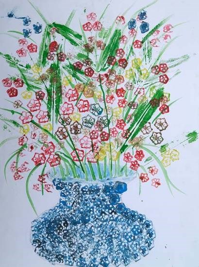Flower Pot Silver medal from Art contest no. 1 for all Ashramshalas Keywords: ladyfinger print , leaves print , flowers , pot , flowerpot View Portfolio icon Share Facebook Twitter Whats App Pinterest Description -- Art Number 24960 Artwork Title Flower Pot Artist Name Arpita Madavi Medium Watercolour on Paper Size 13.69 x 11.69 inches (34.7726 x 29.6926 cm) Information Arpita Madavi (class 5), Khemancheru Ashramshala, Aheri PO - Silver medal from Art contest no. 1 for all Ashramshalas of Tribal Development Department, Govt. of Maharashtra