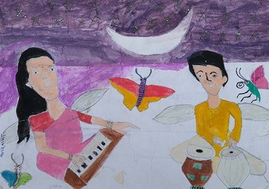 Dream to be a Musician Silver medal from Art contest no. 1 for all Ashramshalas Keywords: harmonium , tabala , dream , musician , butterfly View Portfolio icon Share Facebook Twitter Whats App Pinterest Description -- Art Number 24967 Artwork Title Dream to be a Musician Artist Name Akshay Usendi Medium Watercolour on Paper Size 8.27 x 11.69 inches (21.0058 x 29.6926 cm) Information Akshay Usendi (class 7), Karwafa Ashramshala, Gadchiroli PO - Bronze medal from Art contest no. 1 for all Ashramshalas of Tribal Development Department, Govt. of Maharashtra