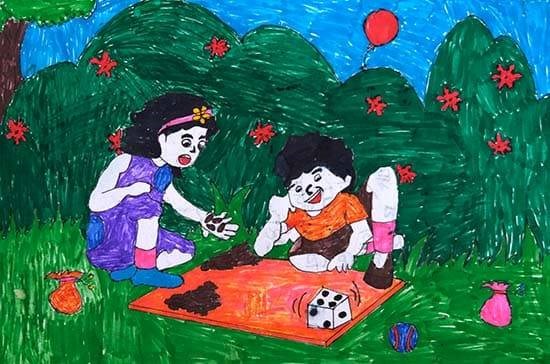 My favorite game Honorable mention from Art contest no. 1 for all Ashramshalas Keywords: girl , boy , playing games , ball , grass , tree , flower , balloon View Portfolio icon Share Facebook Twitter Whats App Pinterest Description -- Art Number 24988 Artwork Title My favorite game Artist Name Neha Sudhir Khutade Medium Sketch Pen on Paper Size 8.27 x 11.69 inches (21.0058 x 29.6926 cm) Information Neha Khutade (class 8), Dabhosa Ashramshala, Jawhar PO - Honorable mention from Art contest no. 1 for all Ashramshalas of Tribal Development Department, Govt. of Maharashtra