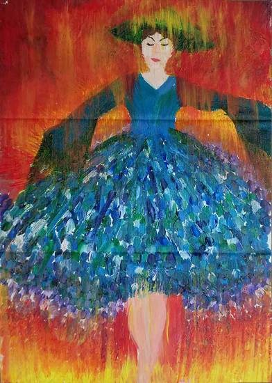 Dancing in the fire Silver medal in Khula Aasmaan art competition for child artist Keywords: dance , figurative , dance in the fire , fire View Portfolio icon Share Facebook Twitter Whats App Pinterest Description -- Art Number 25028 Artwork Title Dancing in the fire Artist Name Csenge Natalia Pop Medium Acrylic on Treated canvas Size 16.53 x 11.69 inches (41.9862 x 29.6926 cm) Information This painting is one of my favorites. I have often seen people rejoice when they dance in the rain, and I have imagined what it would be like to dance in the fire. This painting by child artist Csenge Natalia Pop (12 years) received a Silver Medal in Khula Aasmaan painting contest for children for January to March 2022.