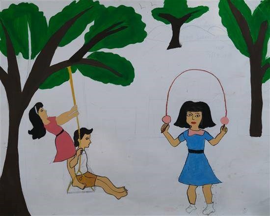 Children playing games Shortlisted from Art contest no. 1 for all Ashramshalas Keywords: my favorite games , children , game , girls , boys , swing , skipping rope View Portfolio icon Share Facebook Twitter Whats App Pinterest Description -- Art Number 25157 Artwork Title Children playing games Artist Name Nirasha Korage Medium Pencil colours on Paper Size 11.69 x 16.53 inches (29.6926 x 41.9862 cm) Information Nirasha Korage (class 8), Borda Ashramshala, Chandrapur PO - Shortlisted from Art contest no. 1 for all Ashramshalas of Tribal Development Department, Govt. of Maharashtra