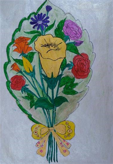 Flowers Bouquet Shortlisted from Art contest no. 1 for all Ashramshalas Keywords: flower bouquet , decorating ribbon , leaves , buds View Portfolio icon Share Facebook Twitter Whats App Pinterest Description -- Art Number 25231 Artwork Title Flowers Bouquet Artist Name Jagruti Sambare Medium Mixed Media on Paper Size 11.69 x 8.27 inches (29.6926 x 21.0058 cm) Information Jagruti Sambare (class 9), Bhopoli Ashramshala, Jawhar PO - Shortlisted from Art contest no. 1 for all Ashramshalas of Tribal Development Department, Govt. of Maharashtra