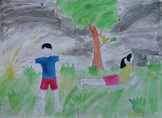 Health is Wealth Shortlisted from Art contest no. 1 for all Ashramshalas Keywords: exercise , health is wealth , morning exercise , girl , Surya namaskar , boy , bird , grass , sun , good health View Portfolio icon Share Facebook Twitter Whats App Pinterest Description -- Art Number 25427 Artwork Title Health is Wealth Artist Name Kavita Gotami Medium Microtip pen on Paper Size 11.69 x 16.53 inches (29.6926 x 41.9862 cm) Information Kavita Gotami (class 8), Ashramshala, Bhamragad PO - Shortlisted from Art contest no. 1 for all Ashramshalas of Tribal Development Department, Govt. of Maharashtra