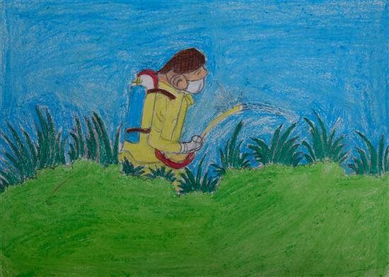 Spraying insecticides Shortlisted from Art contest no. 1 for all Ashramshalas Keywords: spraying insecticides , killing pests , mechanical sprayers , man wearing mask , pesticide spray suit View Portfolio icon Share Facebook Twitter Whats App Pinterest Description -- Art Number 25512 Artwork Title Spraying insecticides Artist Name Ashwini Pawara Medium Crayons on Paper Size 11.69 x 16.53 inches (29.6926 x 41.9862 cm) Information Ashwini Pawara (class 6), Arthe Khurd Ashramshala, Dhule PO - Shortlisted from Art contest no. 1 for all Ashramshalas of Tribal Development Department, Govt. of Maharashtra