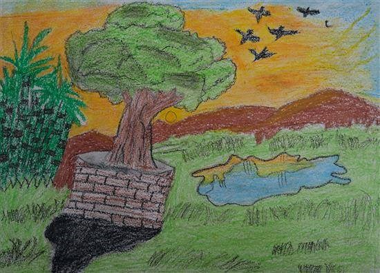 Sunrise Shortlisted from Art contest no. 1 for all Ashramshalas Keywords: Sunrise , orange colored sky , nature , landscape , water pond , grass , sugarcane View Portfolio icon Share Facebook Twitter Whats App Pinterest Description -- Art Number 25548 Artwork Title Sunrise Artist Name Sapana Bhil Medium Crayons on Paper Size 11.69 x 16.53 inches (29.6926 x 41.9862 cm) Information Sapana Bhil (class 7), Arthe Khurd Ashramshala, Dhule PO - Shortlisted from Art contest no. 1 for all Ashramshalas of Tribal Development Department, Govt. of Maharashtra