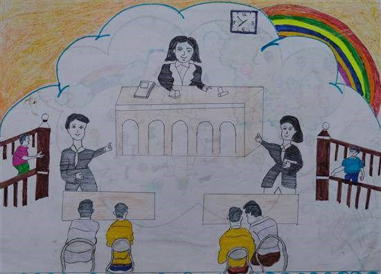 Court Shortlisted from Art contest no. 1 for all Ashramshalas Keywords: lawyer , judge , watch , chairs , hammer , My dream is to be a lawyer , court View Portfolio icon Share Facebook Twitter Whats App Pinterest Description -- Art Number 25647 Artwork Title Court Artist Name Pramila Jamunkar Medium Mixed Media on Paper Size 10.62 x 1 inches (26.9748 x 2.54 cm) Information Pramila Jamunkar, Dharani PO - Shortlisted from Art contest no. 1 for all Ashramshalas of Tribal Development Department, Govt. of Maharashtra
