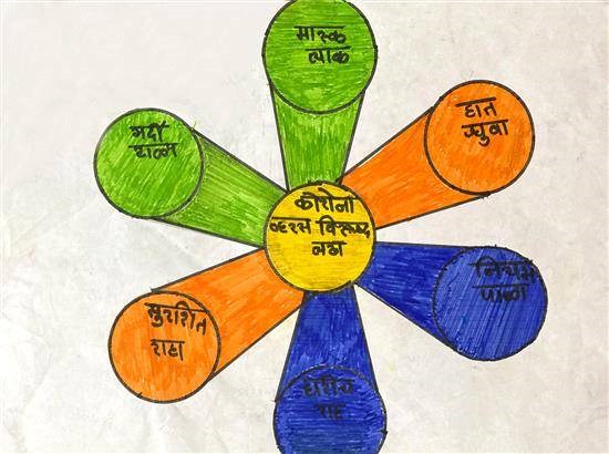 Mission against Corona Shortlisted from Art contest no. 2 for all Ashramshalas Keywords: mission against corona , solutions , chart of rules View Portfolio icon Share Facebook Twitter Whats App Pinterest Description -- Art Number 25921 Artwork Title Mission against Corona Artist Name Jalee Pawara Medium Sketch Pen on Paper Size 8 x 11.43 inches (20.32 x 29.0322 cm) Information Jalee Pawara (class 10), Akkalkos Ashramshala, Dhule PO - Shortlisted from Art contest no. 2 for all Ashramshalas of Tribal Development Department, Govt. of Maharashtra