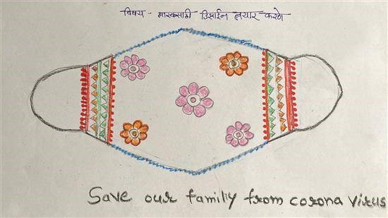 Mask design Shortlisted from Art contest no. 2 for all Ashramshalas Keywords: mask design , design on mask , dots , lines , zigzag lines , prevents infection , corona View Portfolio icon Share Facebook Twitter Whats App Pinterest Description -- Art Number 26070 Artwork Title Mask design Artist Name Prathamesh Masare Medium Oil Pastel on Paper Size 8.26 x 11.43 inches (20.9804 x 29.0322 cm) Information Prathamesh Masare (class 6), Chirodi Ashramshala, Dharani PO - Shortlisted from Art contest no. 2 for all Ashramshalas of Tribal Development Department, Govt. of Maharashtra