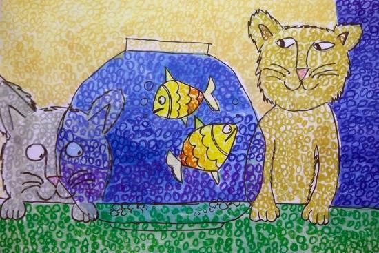 Mercy Painting by child artist in Khula Aasmaan, a platform for creative expression by children & young adults Keywords: cat , fish , fish in pond , Mercy , staring , two cats , fishes , mouth drool View Portfolio icon Share Facebook Twitter Whats App Pinterest Description -- Art Number 26090 Artwork Title Mercy Artist Name Mihika Jagtap Medium Crayons on Paper Size 11.69 x 16.53 inches (29.6926 x 41.9862 cm) Information Two cats staring at 2 fishes as their mouths drool. While the fishes are pleading for mercy.