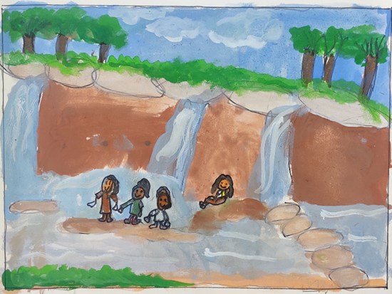 Kushal Falls in Western Ghats, painting by Child Artist Sai Nithya Geethika Thota