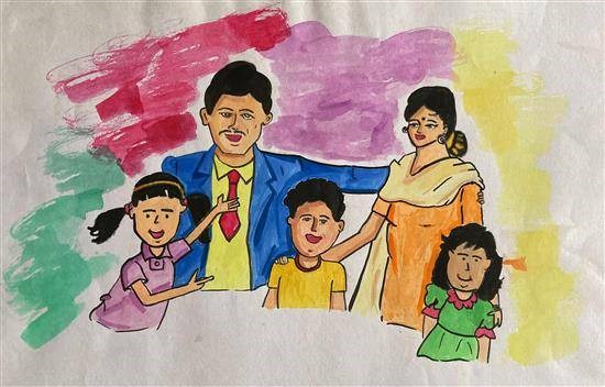 My Family Shortlisted from Art contest no. 2 for all Ashramshalas Keywords: my family , happy family , healthy family , Mother , Father , son , daughter , two girls , little siblings View Portfolio icon Share Facebook Twitter Whats App Pinterest Description -- Art Number 26431 Artwork Title Happy family Healthy family Artist Name Monika Jadhav Medium Watercolour on Paper Information Monika Jadhav (class 7), Nandore Ashramshala, Dahanu PO - Shortlisted from Art contest no. 2 for all Ashramshalas of Tribal Development Department, Govt. of Maharashtra