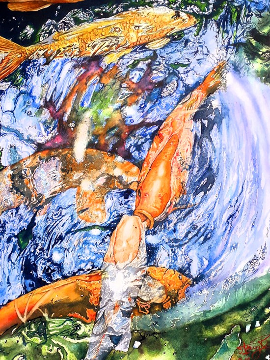 Marine life, painting by Child Artist Anurag Ramola View Portfolio icon Share Facebook Twitter Whats App Pinterest Description -- Art Number 26465 Artwork Title Marine life Artist Name Anurag Ramola Medium Watercolour on Canson paper Size 17 x 0 x 12 inches (43.18 x 0 x 30.48 cm) Information The Painting depicts the livelihood of 'energetic' fishes in Marine. Each and every ripples and reflections of light emerging from different angles are captured. It also displays the concept of 'VIBGYOR' through reflection and refraction of light under the riverbank.