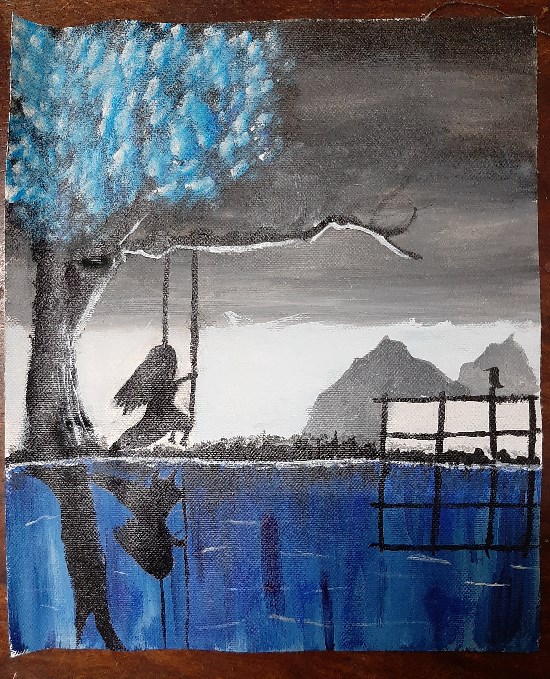 A night by the river, painting by Child Artist Aarna Kalra View Portfolio icon Share Facebook Twitter Whats App Pinterest Description -- Art Number 26511 Artwork Title A night by the river Artist Name Aarna Kalra Medium Acrylic colours on Canvas sheet Size 12 x 10 inches (30.48 x 25.4 cm) Information This artwork is about the silhouette of a girl on a swing, pondering about life.